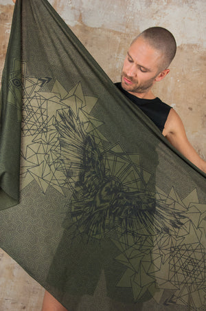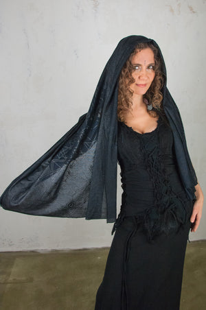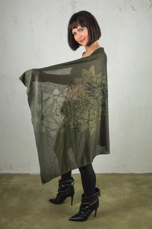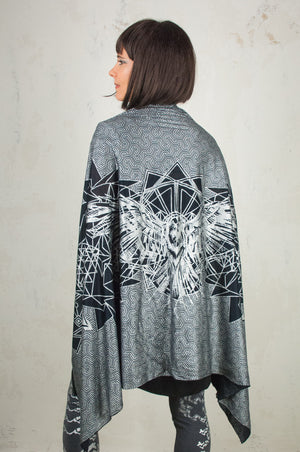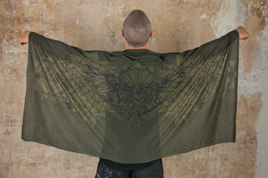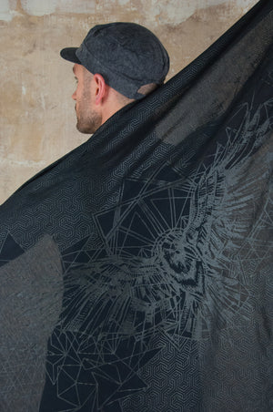 The Crow Shawl with this grogerous crow print is made of super soft and light Modal material. This is a high tech materialfrom Lenzing Austria which is made of trees.
