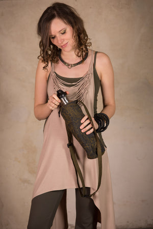 Our bottle bag is the perfect gimmick for outdoor festivals and activities. With the clip buckle you can attach it to nearly every pole, which can come in pretty handy. The slider makes it possible to lengthen the ribbon. For a little organization there is also a little pocket inside.