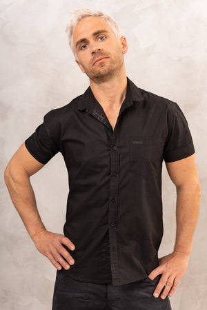 And let's be real, the black-on-black print is just plain sexy. It's like a secret code that only the coolest cats can decipher. So if you're ready to up your fashion game and show the world just what style is, this shirt is the perfect choice. Just don't be surprised if you start getting compliments left and right. It comes with the territory.