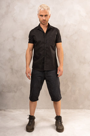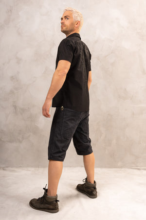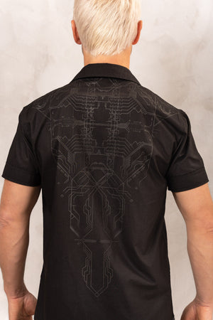 Looking for a shirt that's cooler than the other side of the pillow? Look no further! This button-up shirt is not only super comfy, but it also boasts a sleek black-on-black print designed by an underground artist (IG_swayatra_). You know, the kind of artist who decorates underground music festivals like Modem. Yeah, we're talking next-level amazing here.