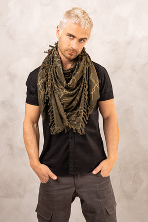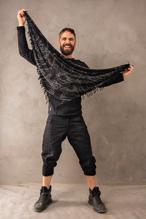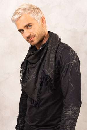 Check out this awesome square shawl with fringes featuring a stunning forest witch and a wolf! This shawl is not your average accessory - it can be worn in 4 different ways, so you can mix up your style and show off a new look each time. And the best part? It's a traditional shemagh shawl or military shawl, making it versatile for all seasons.