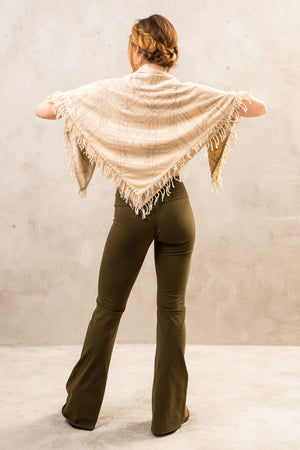 Whether you're hitting the beach, exploring the mountains, or just adding a little edge to your outfit, this shawl has got you covered. With its unique design and comfortable fabric, it's perfect for any occasion. Plus, the fringes add a fun touch that's sure to turn heads.