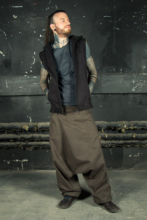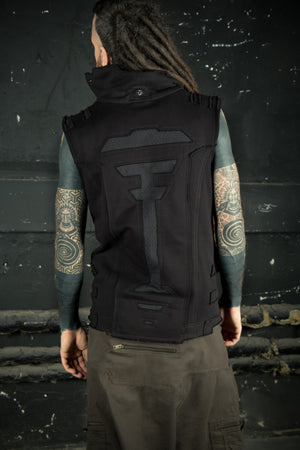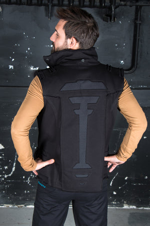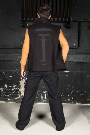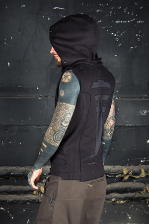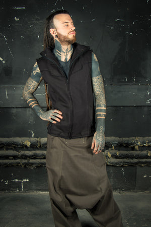 The Totem Vest Black is a high quality travel vest with a unique design. The back pattern is made from the inside out so it will give a more 3 dimensional look. The boarders of the vest we have made in a wild cut style to give the vest a more tougher look. The inside of the jacket is made with a clean and professional sewing ... so its a perfect fusion between wild cut sewing and perfection. Very special is the inside dark sacred geometry back print which gives the jacket the last perfect appearance.