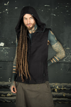 You will also see the high quality of the vest with all the extra features. It is made of thick cotton fleece. The detachable hood with an extra secret pocket has a Jedi like look. The high collar will keep you comfortable in all weather conditions.