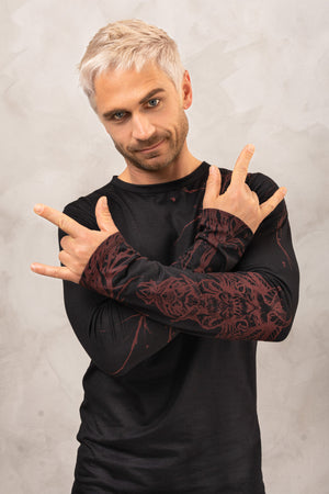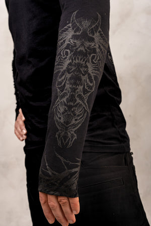 Amazing Tattoo Art Longsleeve Shirt in co production of IG: seeker.ttt which we met the first time on Ozora Festival. We really like the dirty and demonic style of this Longsleeve which only could be produced by such a talent.